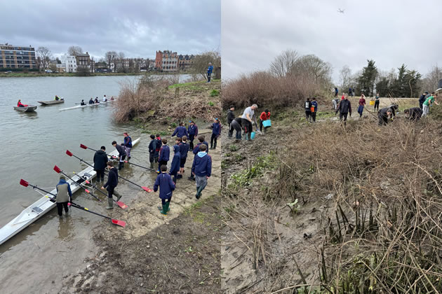 Left: the club's crews now have river access. Right: Volunteers help clear the slipway of derbis