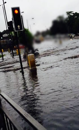 “The huge volume of rain has resulted in a lot of surface water and we would advise people to avoid walking through floodwater as you can’t see where you’re walking and drain covers may have come dislodged because of the water pressure. Where we’ve been informed about drain covers and other issues on our roads, we have made the roads safe and have informed Thames Water.”